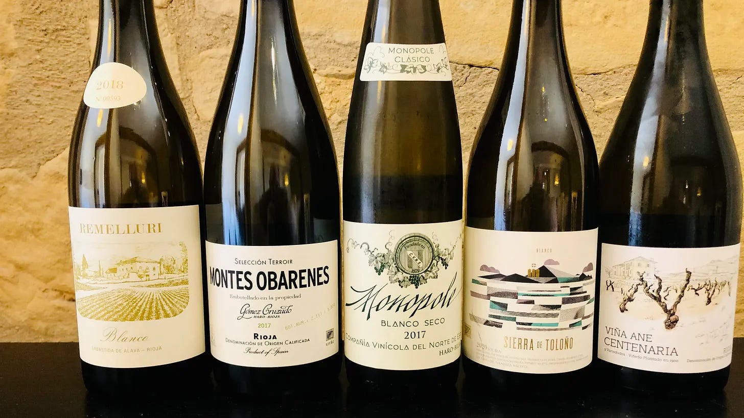 When I was in Rioja a few weeks ago, some of the most exciting bottles that I tasted were white wines. I know that may sound absurd. White grapes make up less than 10 percent of the plantings in Rioja, a region best known for its powerful, oak-aged reds.