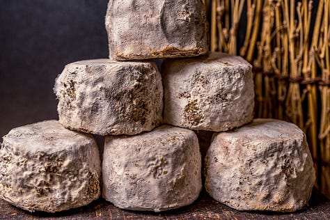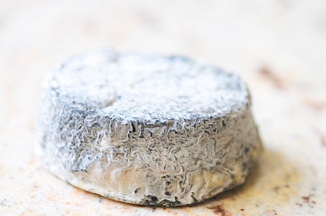 Perhaps my personal favorite is the famed Crottin de Chavignol, made in the same place as Sancerre wines. Crottin de Chavignol was originally named in the local dialect for a small clay oil lamp—though since crottin in French also means “dung,” and perhaps because of Crottin de Chavignol’s aroma and resemblance to a pile of . . . well anyway, the name stuck.