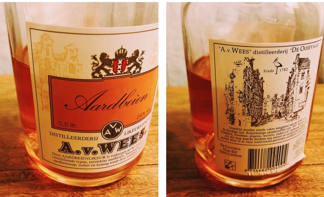 There are only two quality strawberry spirits I can even think of, and they are super super obscure. One would be a strawberry liqueur made by A. van Wees, distiller of De Ooievaar genever, and old craft distillery within Amsterdam’s city limits. A.v. Wees Aardbeien Likeur, at 24% abv, is very subtle, made with strawberries drenched in brandy. The result is, according to the distiller, “Literally the spirit of the strawberries…pronounced strawberry, WITHOUT the pungent fake candy taste that characterizes most fruit liqueurs.” I agree with that assessment, and I use Aardbeien Likeur less as a fruity accompaniment, and more as a mixer with gin (I substitute it for vermouth in a martini variation), the strawberry mingling with the gin’s botanicals.